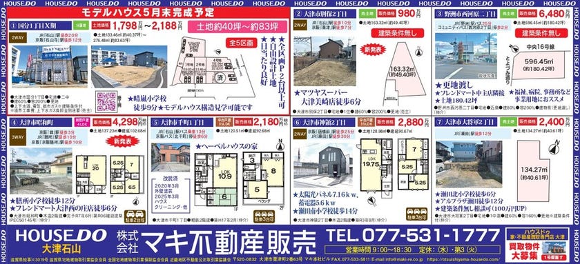 今回のチラシに掲載されている野洲市西河原二丁目の土地だけでなく、大津市ロードサイド沿いの土地など多数ご案内可能です。
